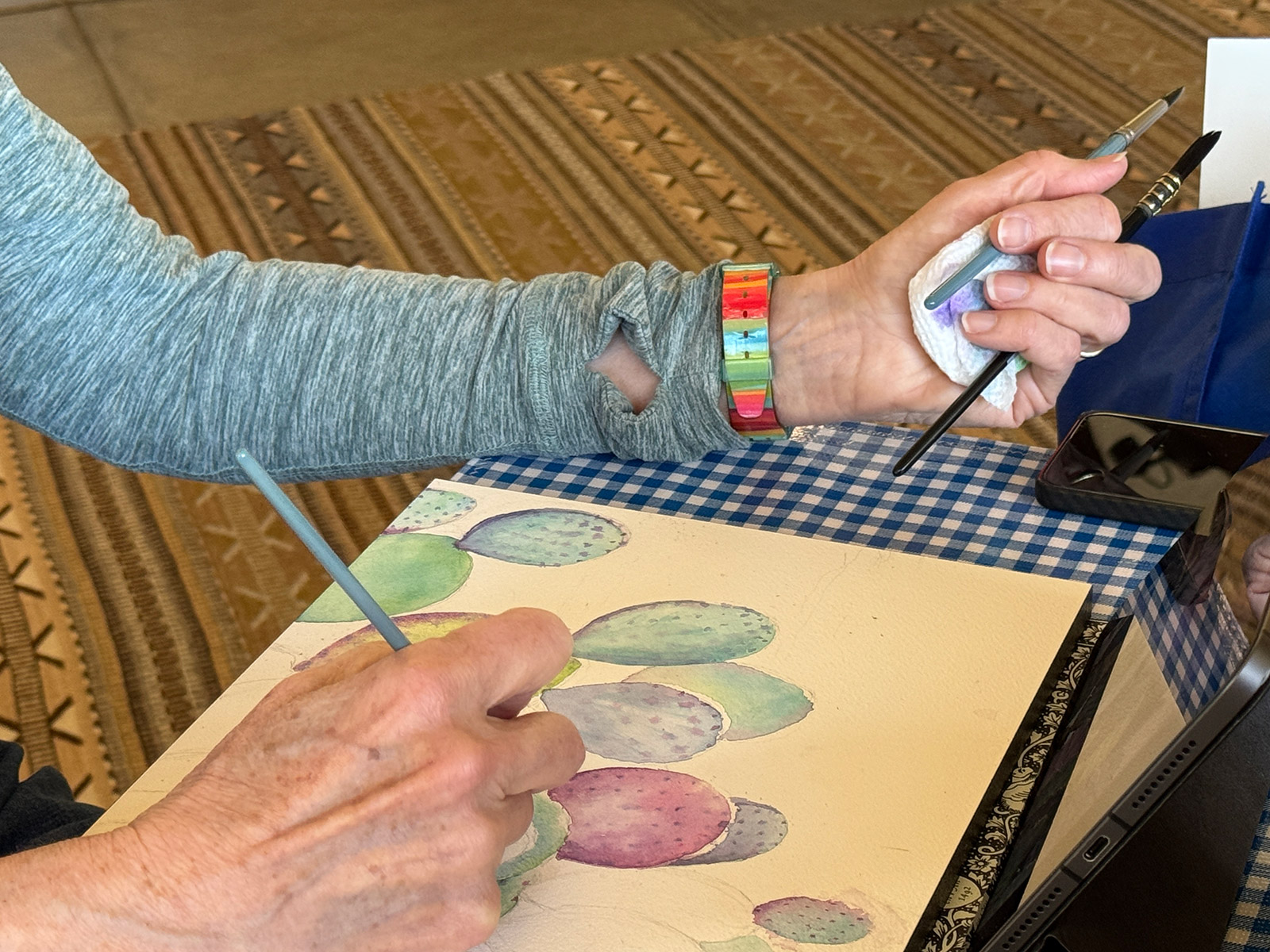 All levels of experience are welcome, including total beginners who haven’t touched a paintbrush since elementary school! That said, we do expect that lessons will evolve through the week, so it would be difficult to jump in mid-week, particularly if you are a beginner.