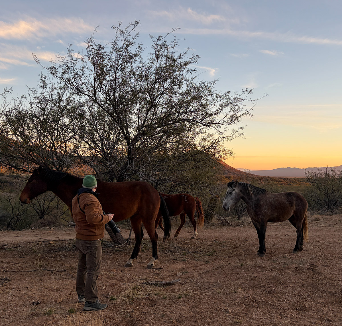 The day often begins at the barnyard capturing the light and action of the morning wrangle or an early walk to photograph the morning sunrise over the Altar Valley. Enjoy horseback riding, hiking, birdwatching and relaxation with your camera in hand as much or little as you choose. Late afternoon and after dinner workshop presentations are scattered through the week, ending with a group slide show Saturday evening.